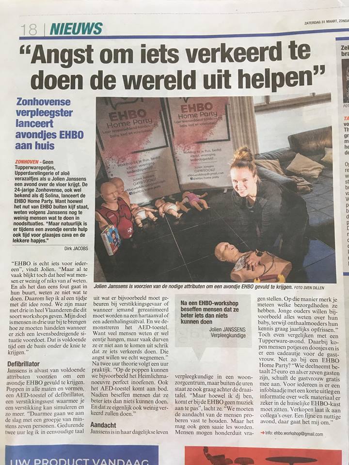 EHBO Home Party in de krant ! Jolien April 2018 2372 EHBO Home party organiseert EHBO avondjes bij jouw thuis, school, kinderdagverblijf,...